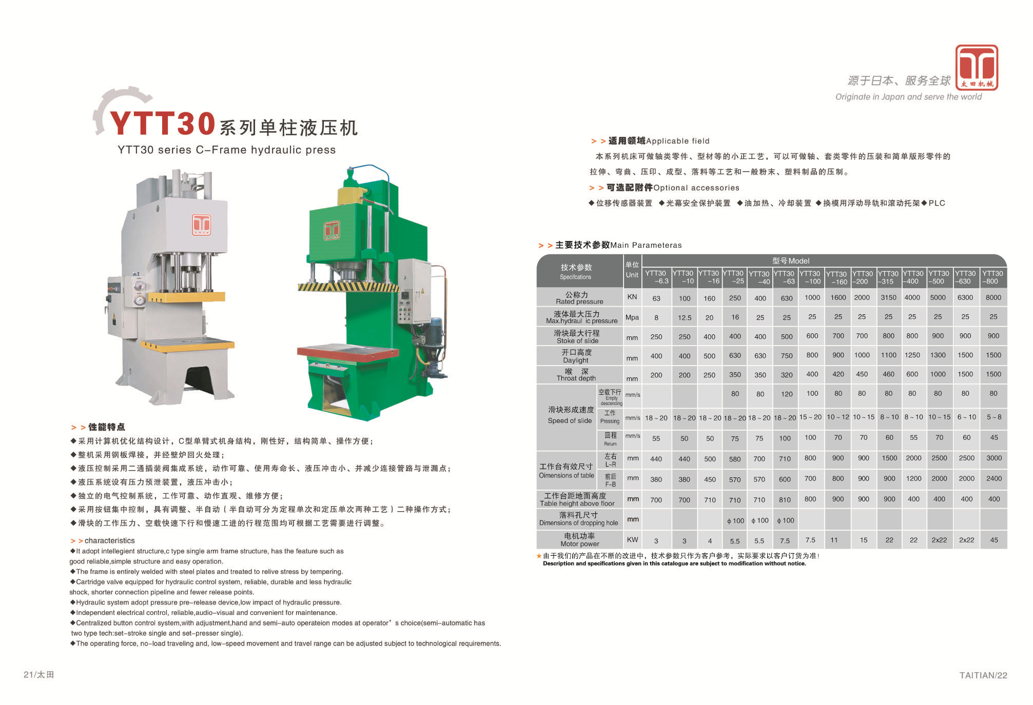 產品介紹:性能特點:采用計算機優化結構設計,C型單臂式機身結構,剛性好,結構簡單、操作方便;整機采用鋼板焊接,并經壁爐回火處理;液壓控制采用二通插裝閥集成系統,動作可靠、使用壽命長、液壓沖擊小、并減少連接管路與泄漏點;液壓系統設有壓力預泄裝置,液壓沖擊小;獨立